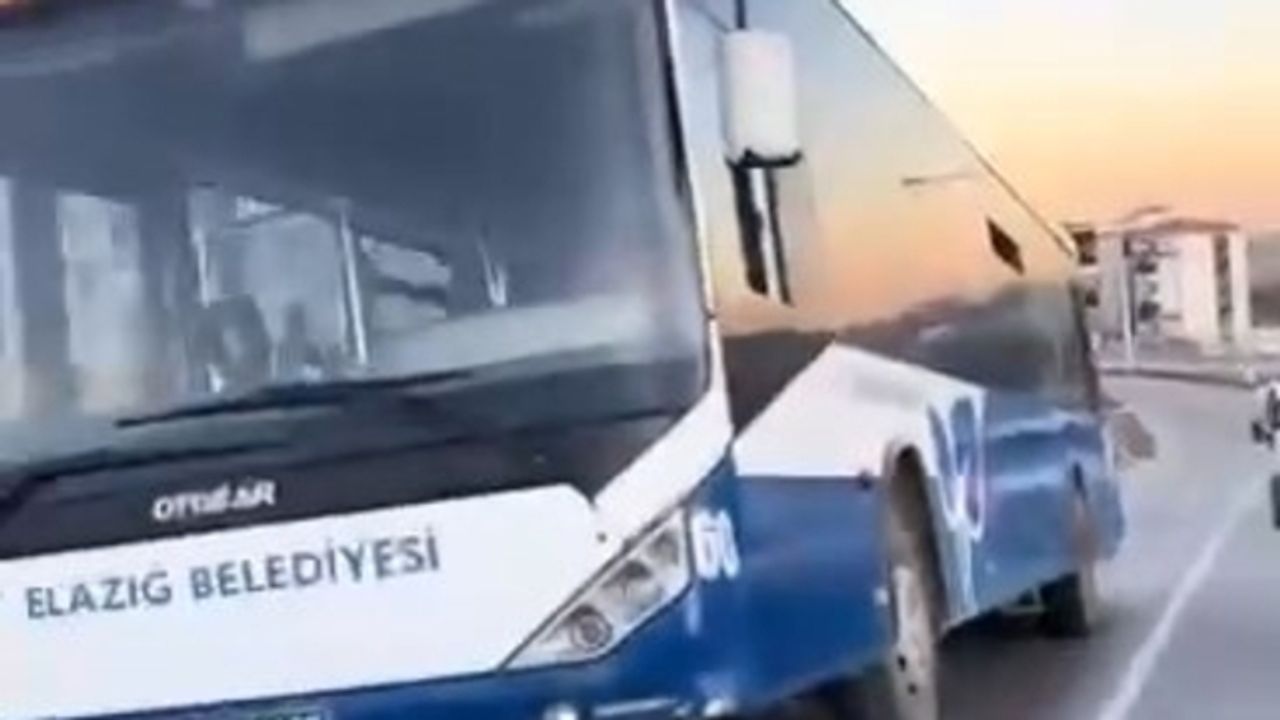 ELAZIĞ'da arızalanan şehir içi yolcu otobüsü, bir tekeri havada trafikte seyretti. O anlar, diğer sürücüler tarafından cep telefonu kamerasıyla görüntülendi.