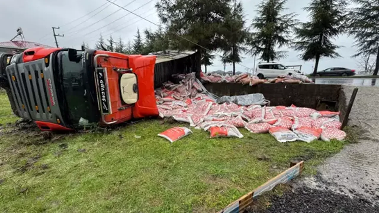 Ordu’da evin bahçesine devrilen besi yemi yüklü TIR’ın şoförü Ferda Gültaş yaralandı.