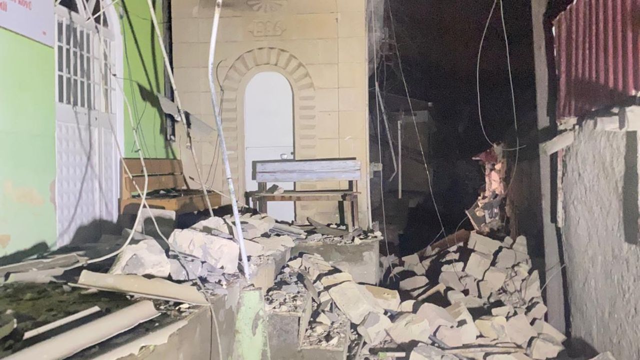 Fırtına nedeniyle köy camisinin minaresi yıkıldı