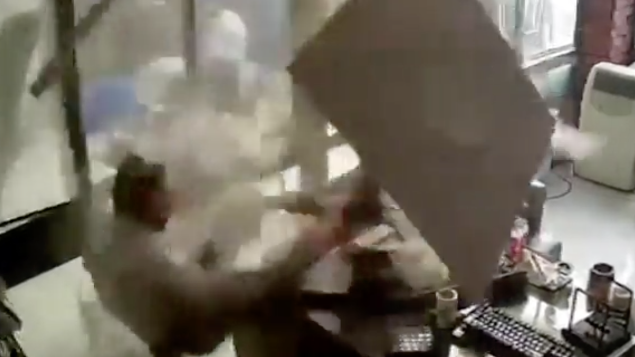 KARABÜK'te, Metin I.'nın güvercin beslemek için çıktığı asma tavan çöktü. O anlar kameraya yansırken, Metin I. olayı hafif sıyrıklarla atlattı.