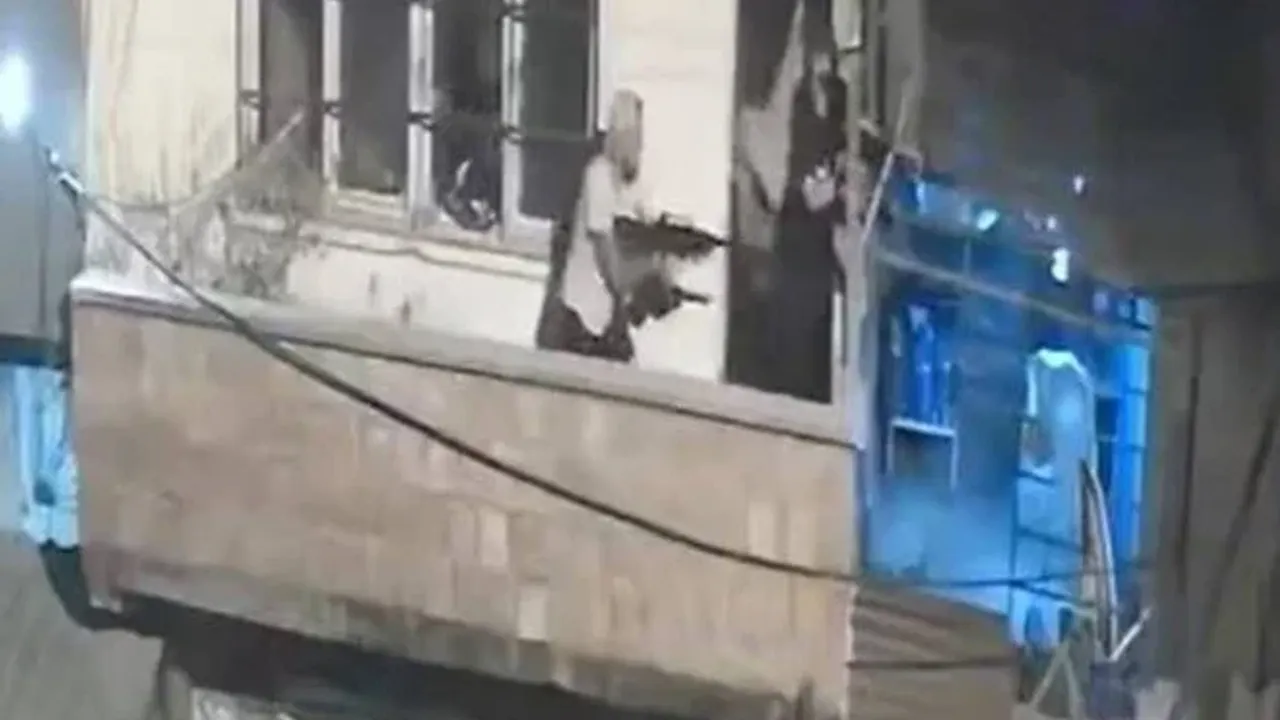 Adana'da husumetli komşular arasında balkondan balkona silahlı çatışma çıktı. O anlar güvenlik kamerasına yansırken, 4 kişi gözaltına alındı.
