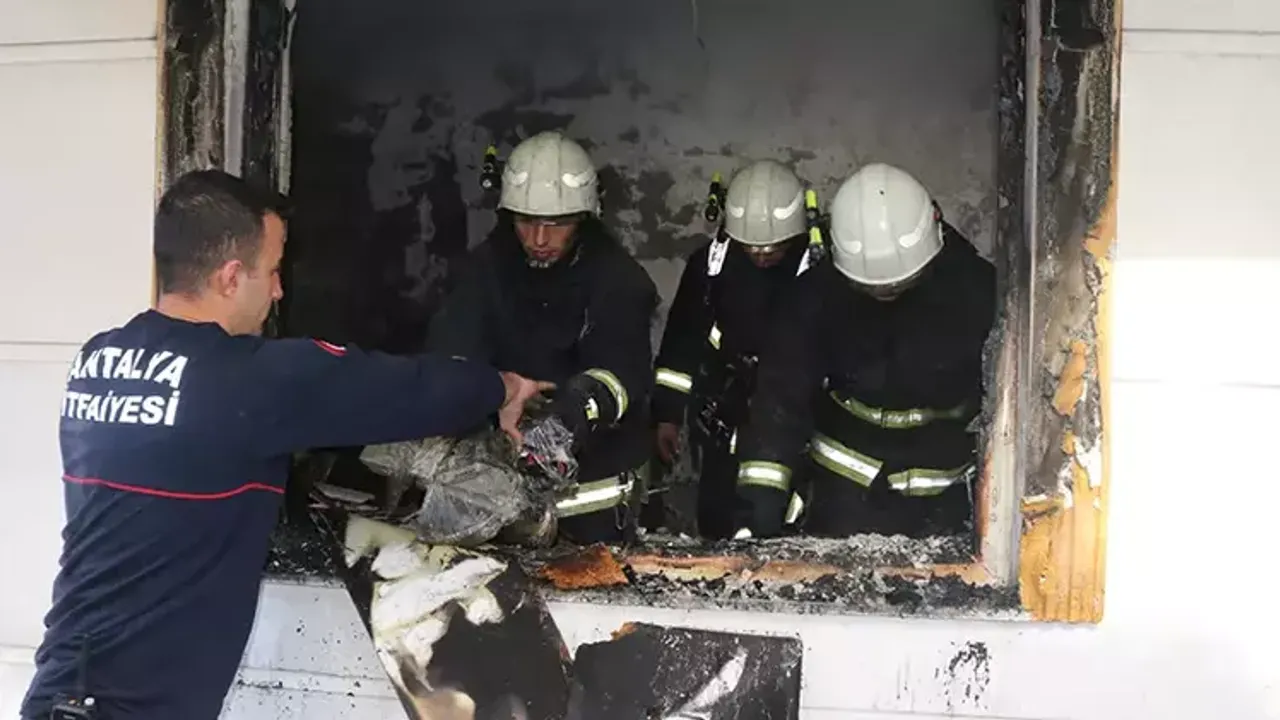 Antalya'da elektrikli ısıtıcıdan kaynaklanan yangında, daire kullanılamaz hale geldi. Yanan evde oturan Furkan Nalbant, büyük korku yaşayan annesinin elini bir an bırakmadı