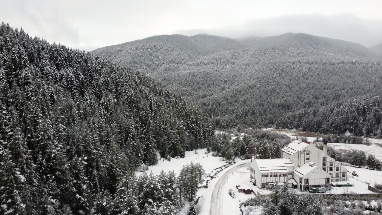 Karla kaplanan Ilgaz Dağı'ndaki çam ormanları dronla görüntülendi