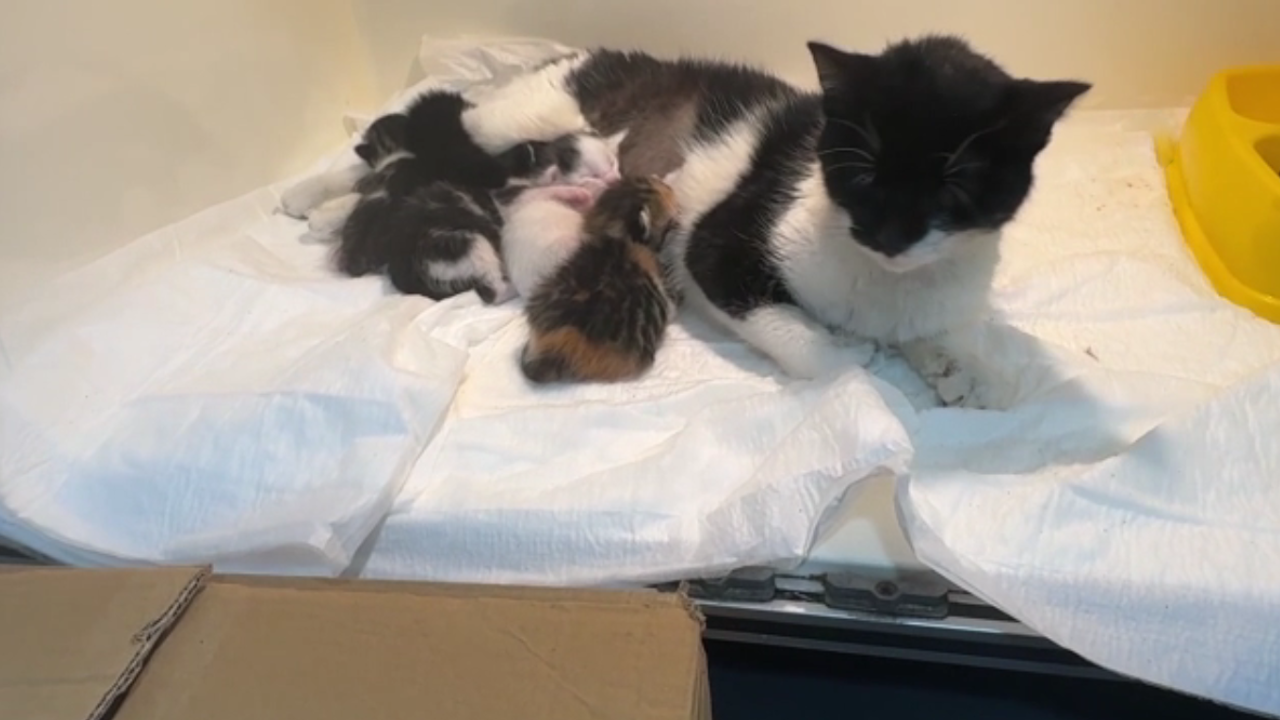 İstanbul'da özel veteriner kliniğinin kapısına karton kutuda bir notla bırakılan ve burada tedavi edilip suni sancı ile doğum yapması sağlanan hamile kedi, yavruları sütten kesildikten sonra sahiplendirilecek.