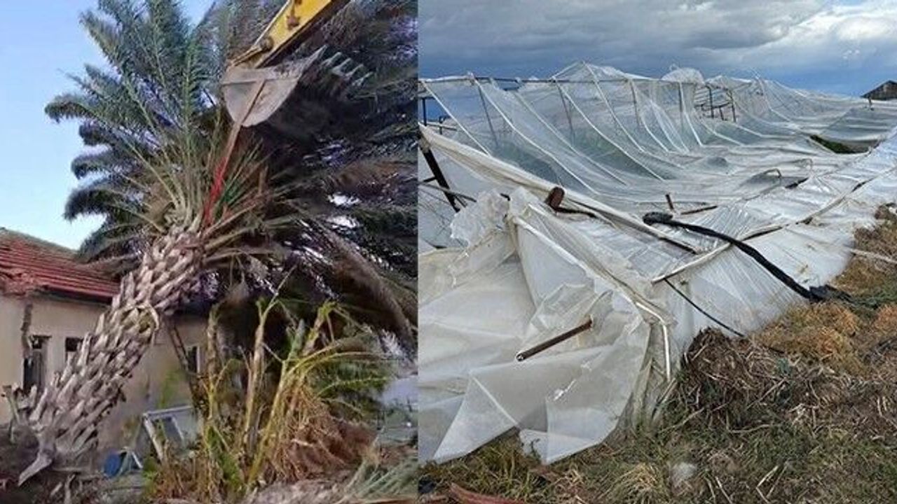 Antalya'nın Kaş ilçesinde fırtına nedeniyle tarım alanlarında seralar zarar gördü, ağaçlar devrildi.