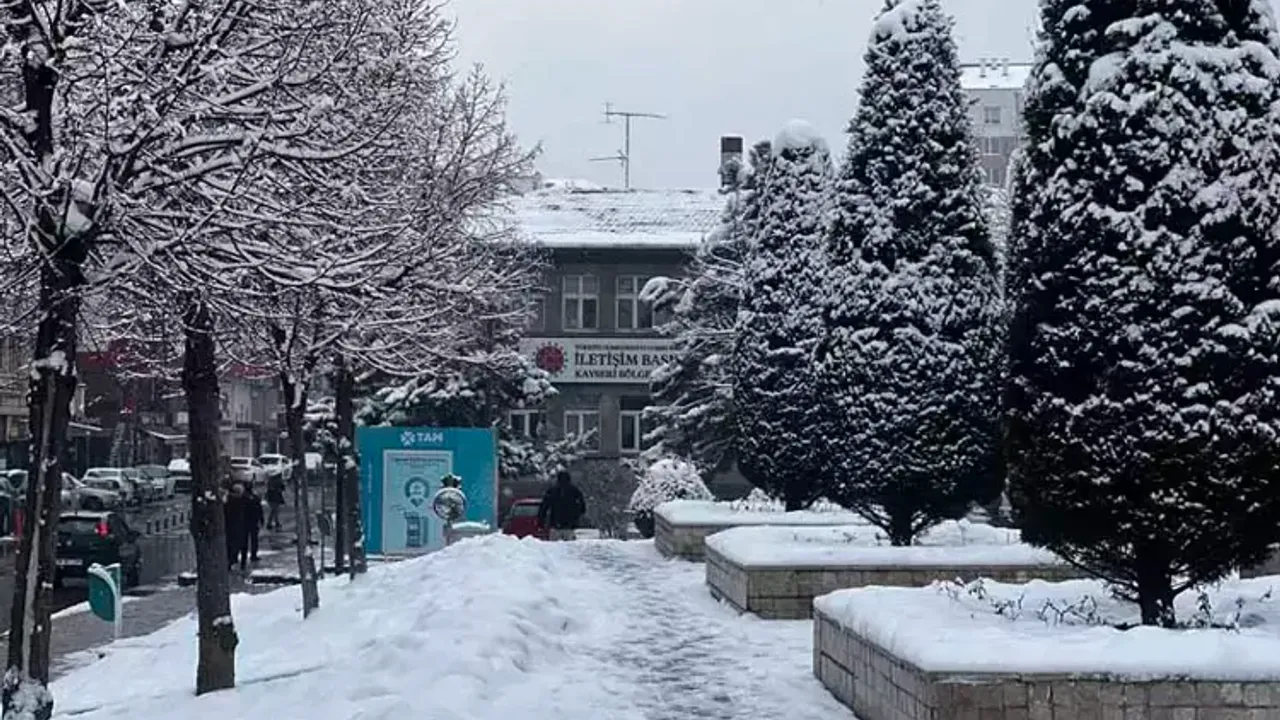 Kayseri'de kar yağışı etkili oldu, kent merkezi beyaz örtü ile kaplandı.