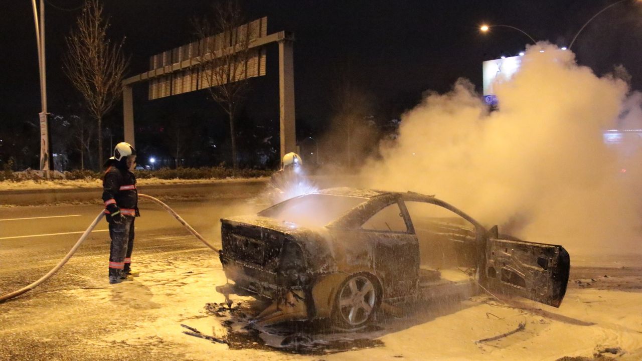 Küle dönen aracını tekmeledi