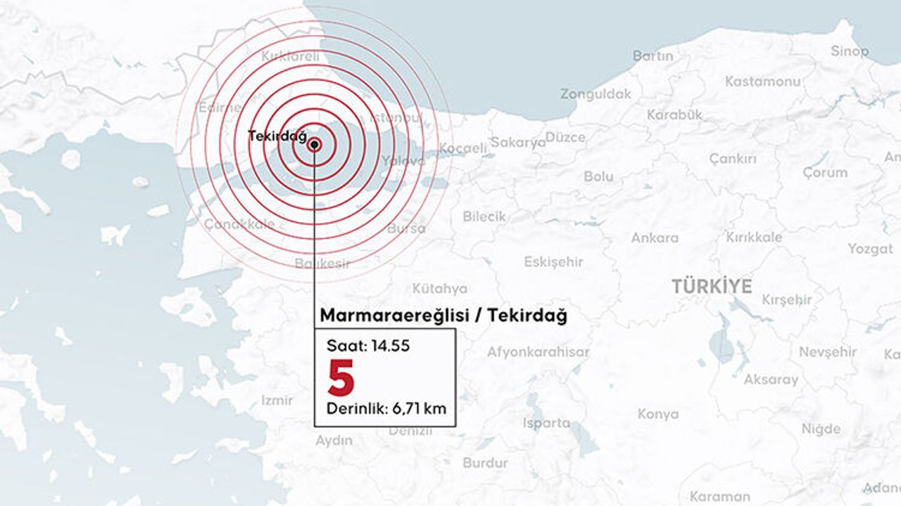 Afet ve Acil Durum Yönetimi Başkanlığının (AFAD) internet sitesinde yer alan bilgiye göre, merkez üssü Marmara Denizi, Tekirdağ'ın Marmaraereğlisi ilçesi açıkları olan 5 büyüklüğünde sarsıntı kaydedildi.