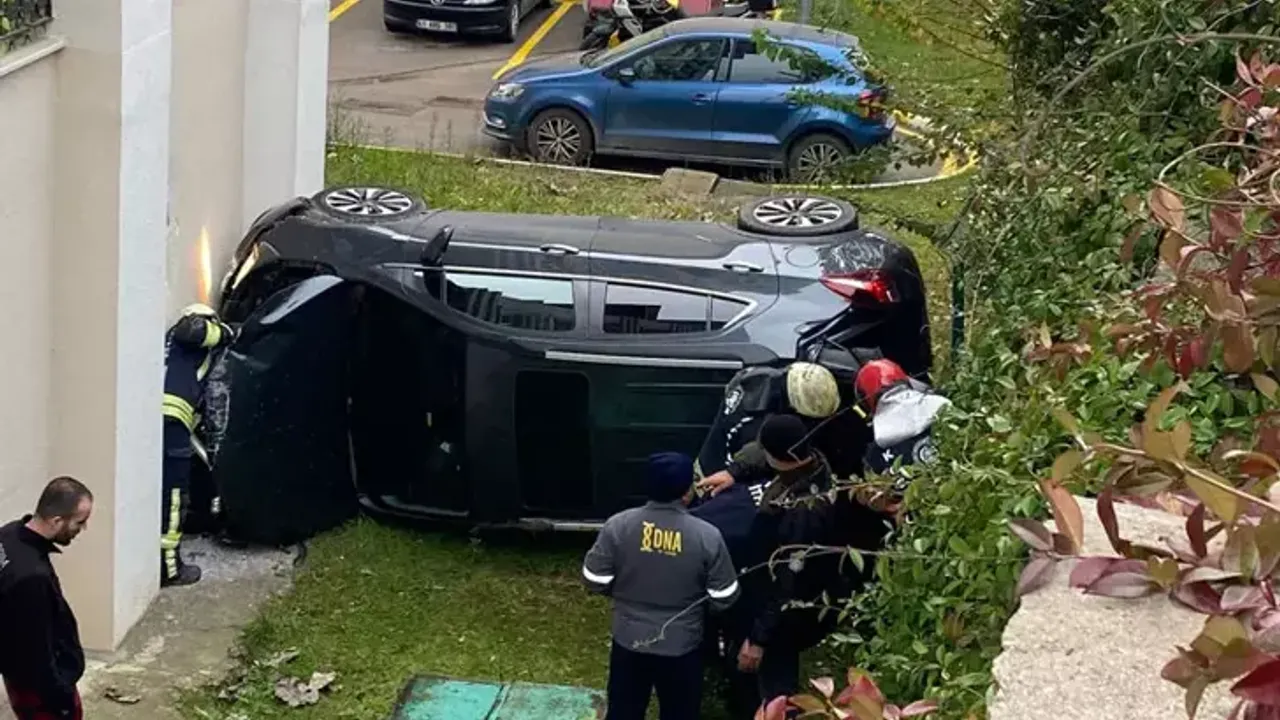 Otomobil, apartman bahçesine uçtu: 2 yaralı