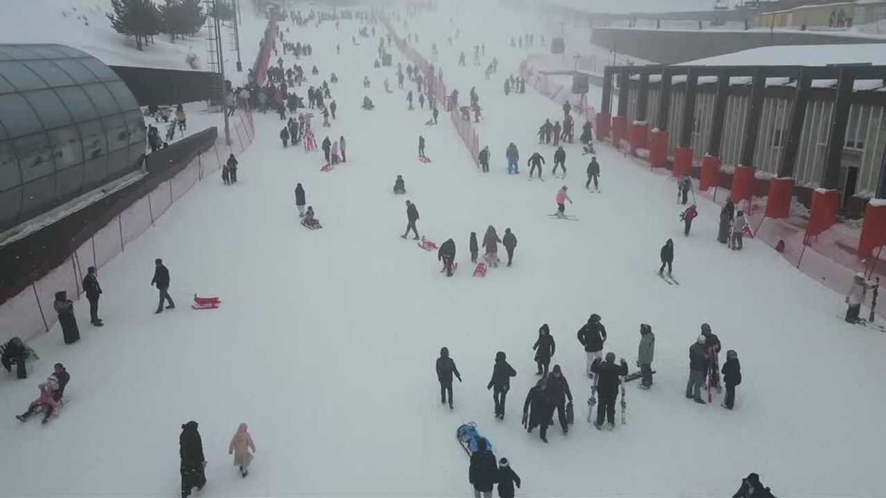 Türkiye'nin önemli kış turizm noktalarından Palandöken Kayak Merkezi'nde yarıyıl tatili dolayısıyla hafta sonu yoğunluğu yaşanıyor.