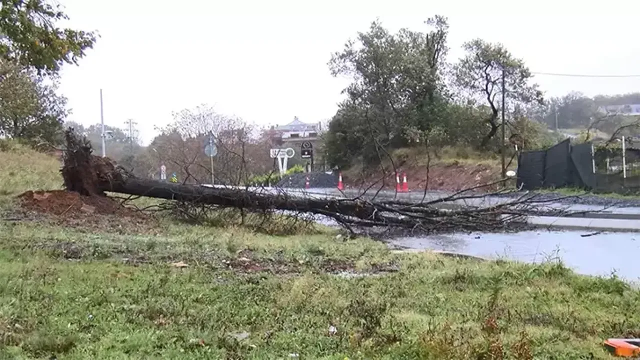 İstanbul'da etkili olan fırtına nedeniyle Sarıyer’de ağaçlar yola devrildi. Yol trafiğe kapandı.