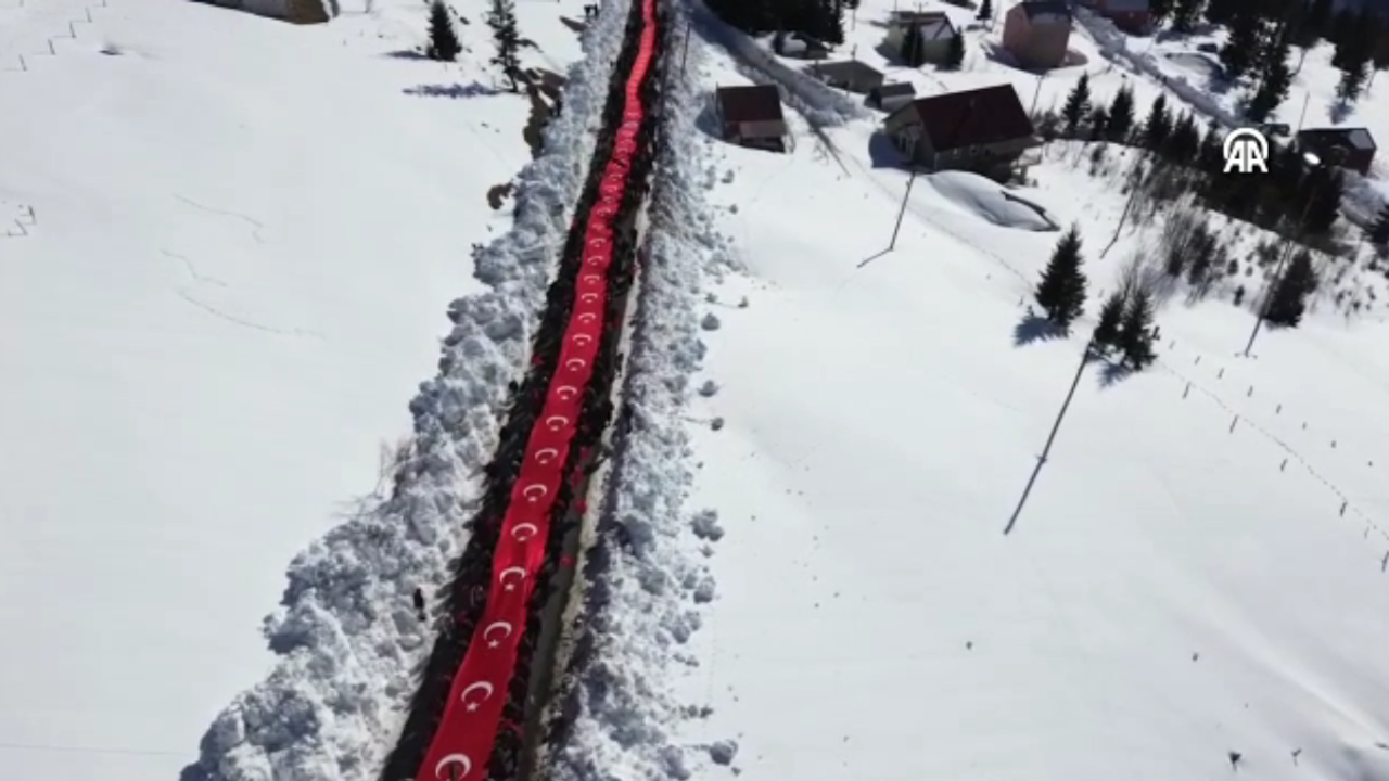Şıhkıranı mevkisinde başlayan ve Sis Dağı'na kadar devam eden yürüyüşe katılanlar, metrelerce uzunluktaki Türk bayrağı taşıdı.