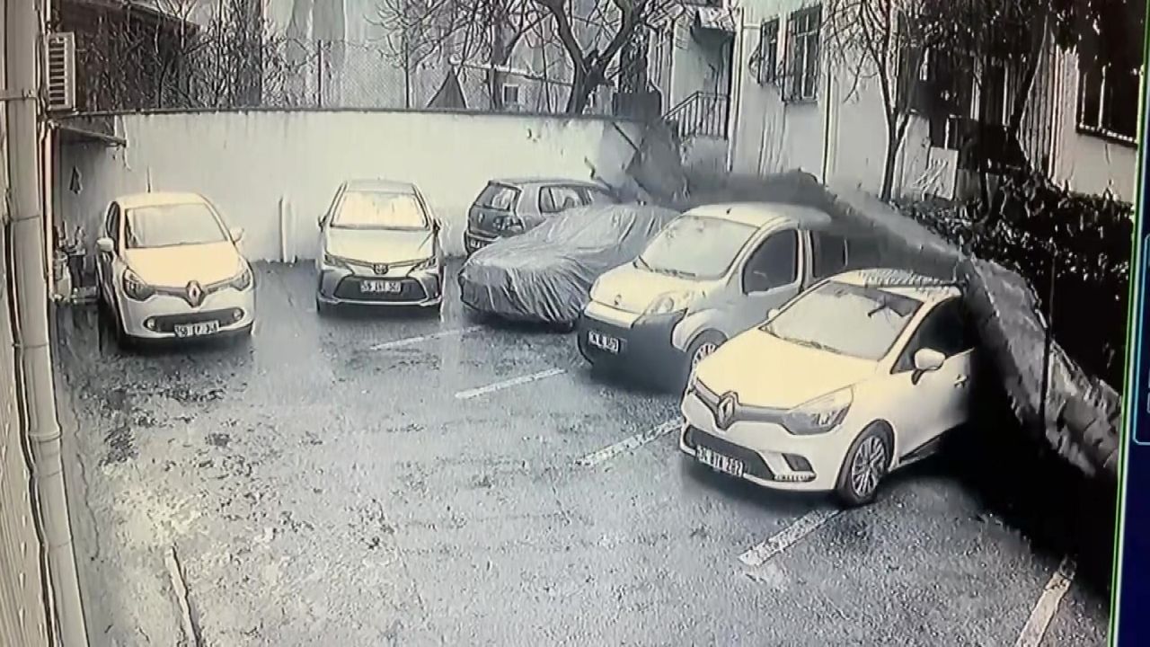 İstanbul Üsküdar’da harabe bir evin istinat duvarı etkili olan sağanak yağışı nedeni ile çöktü. 4 otomobil çöken duvarın altında kalarak hasar gördü. İstinat duvarının çöktüğü anlar güvenlik kamerasına yansıdı.