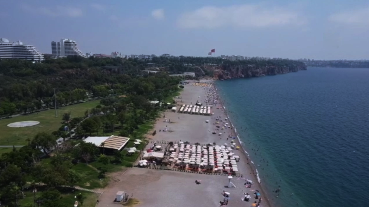 Antalya'da yüzde 81'e ulaşan nemden ve yüksek sıcaklıktan bunalanlar, sahillerde yoğunluk oluşturdu.