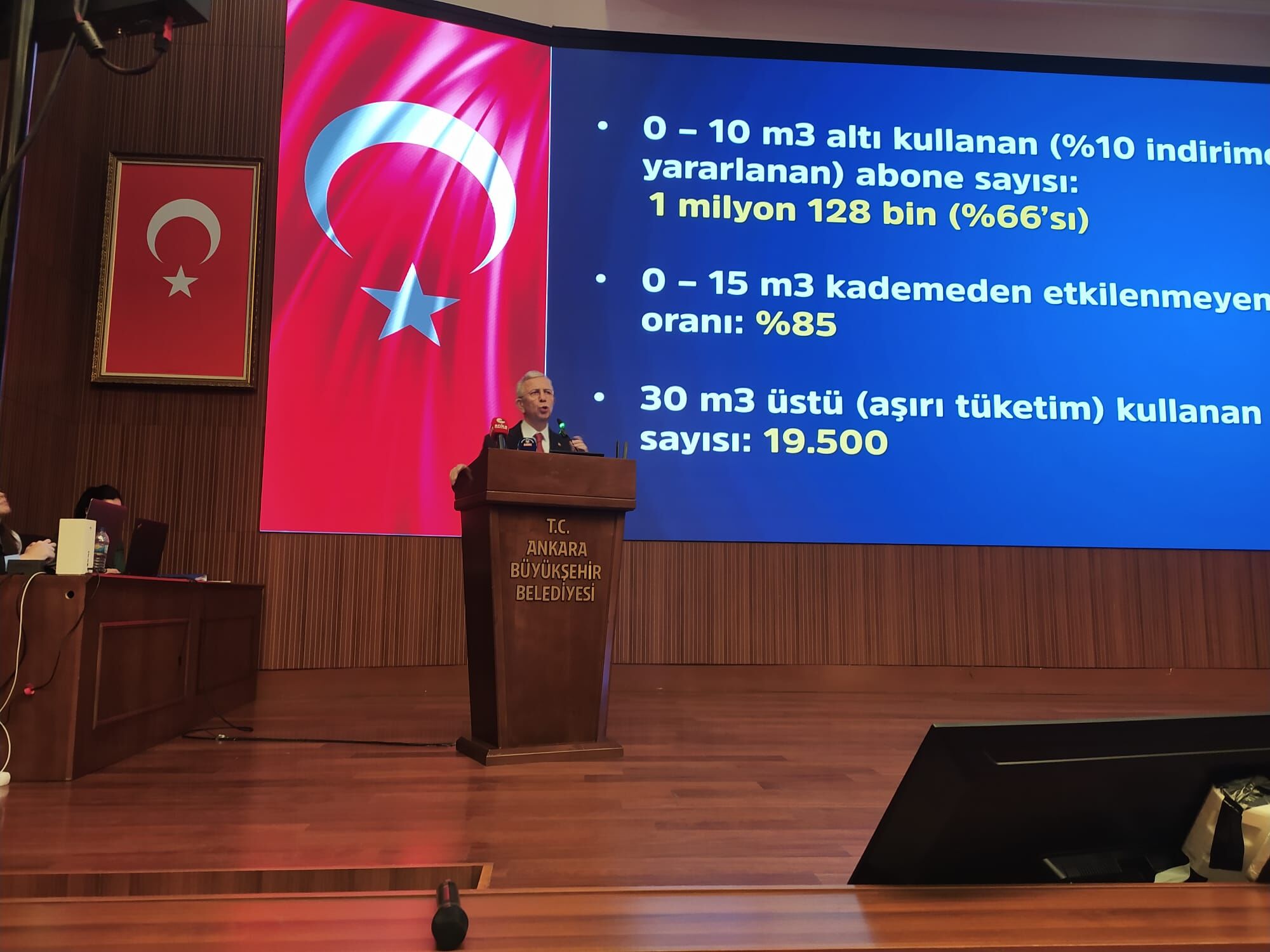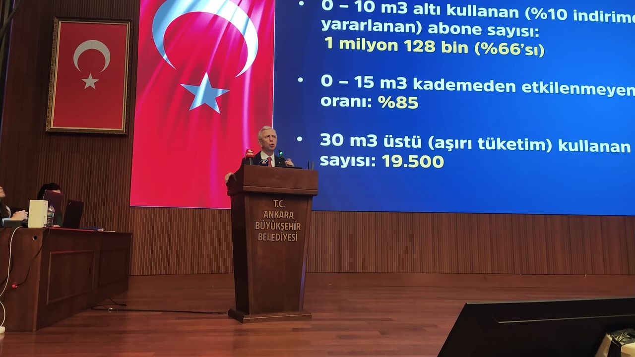 "1 milyar 100 milyon dolarlık yeni yatırım yapıyoruz. 300 bin nüfuslu ilçelerimiz 1 milyona çıkmış ama altyapıları hiç yapılmamış. Yağmur suyu ve kanalizasyon hatlarını ayırıyoruz. Mevsim itibarıyla Gerede’den yeterince su geliyor, Tekke Barajı'ndan da su verilmesi için yazı yazdım. Yeni yaptığımız Kesikköprü hattımız da bir yıl içinde bitince en az 2 yıl Ankara’da su sıkıntısı olmayacak. Ancak 2029 yılından itibaren bir kriz kapıda, şimdiden önlemimizi alıyoruz ki bizden sonrakiler bu sıkıntıyı yaşamasın."