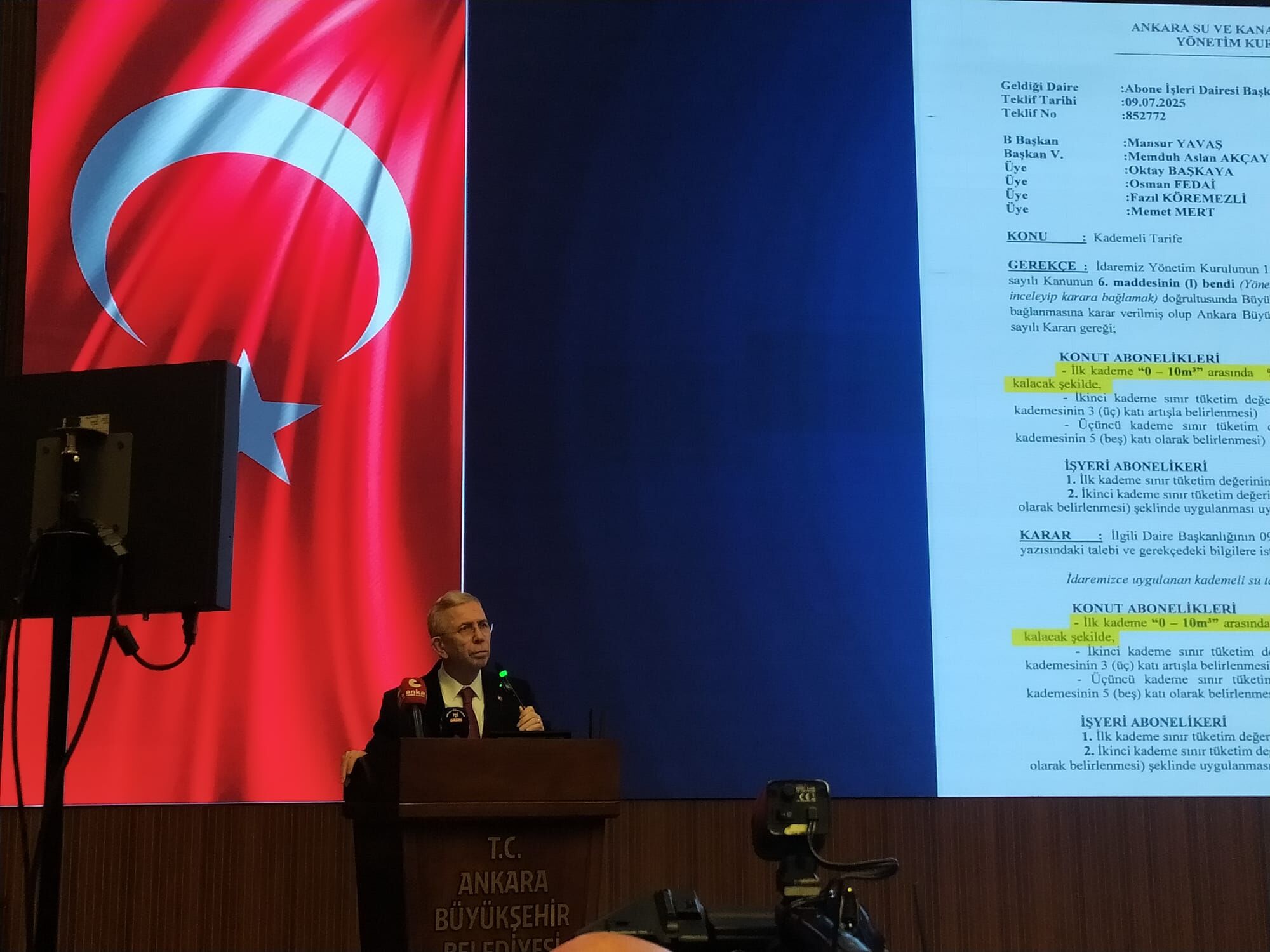 "Biz göreve gelir gelmez köylerde suyu 1 kuruş yapmak için meclis kararı aldık ama kanun gereği uygulanmadı. Şu an 1 milyon 128 bin kişinin faturası düştü. Sosyal yardım alan 200 bin vatandaşımıza suyu metreküpü 1 liradan, yani sembolik bir rakamla neredeyse tamamen ücretsiz veriyoruz. Buradan hükümete sesleniyorum: Eğer iktidar enerjiye, akaryakıta ve elektriğe yaptığı zamları indirirse, biz suyu Ankara halkına bedava bile veririz. Ama hem zam yapıp hem de belediyeyi suçlamak siyasi ahlaksızlıktır. Su üzerinden kâr edilmez."