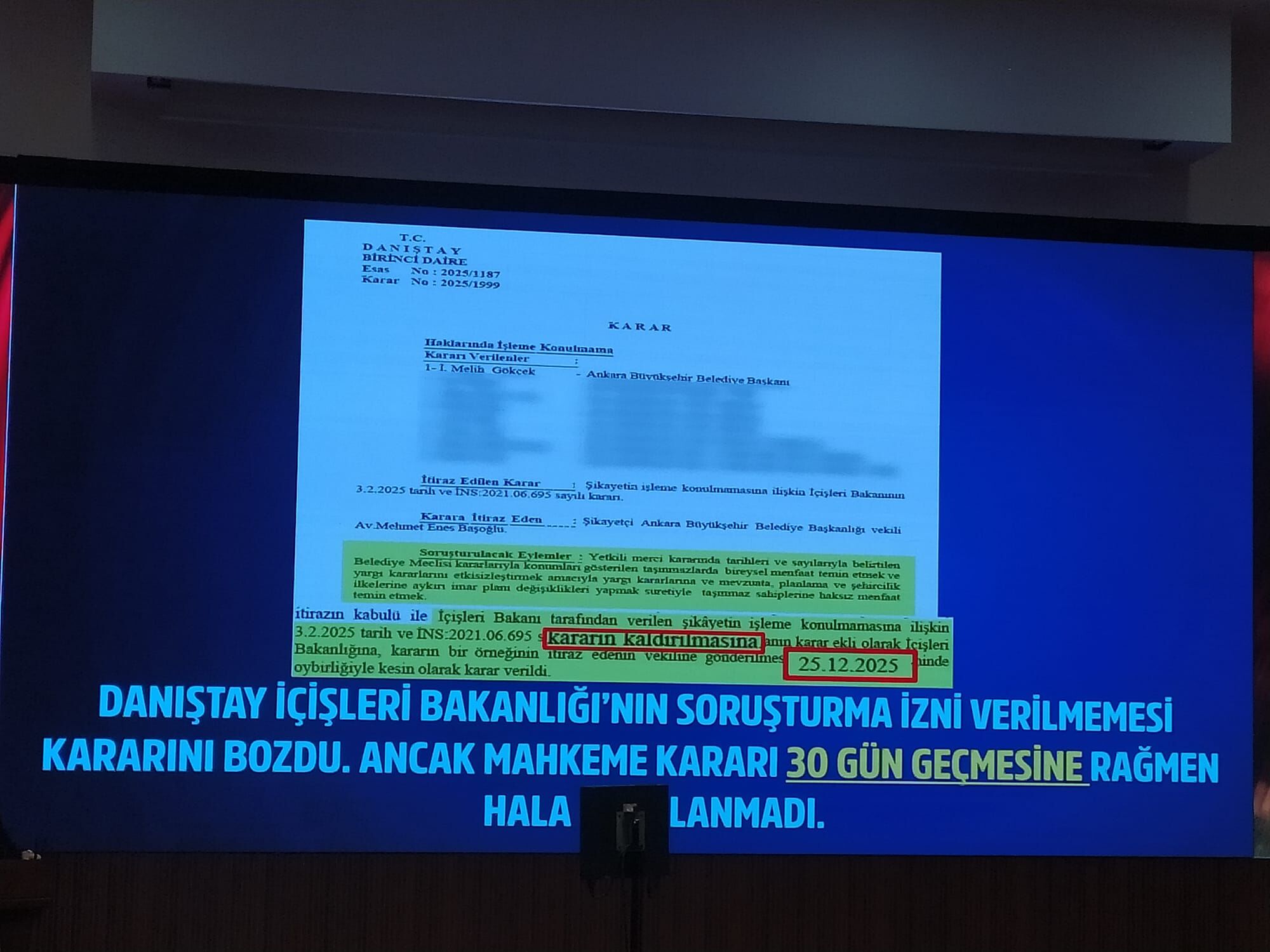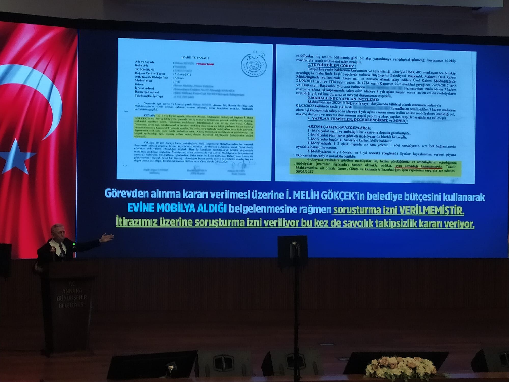 "Gökçek'in FETÖ dönemindeki imar rantlarıyla ilgili şikâyetimize bakanlık 'işleme konulmaması' kararı vermişti. Danıştay bu kararı bozdu. Sayın Bakanım, önünüze getirilmemiş olabilir ama Gökçek hakkında derhal soruşturma izni verin. Hayatı boyunca memur olan birinin, hiçbir ticari faaliyeti yokken 600 milyon liralık villa yapması, ailesinin yüz milyonlarca liralık mal varlığına sahip olması açıklanabilir bir durum değildir. Bu değirmenin suyu nereden geliyor?"